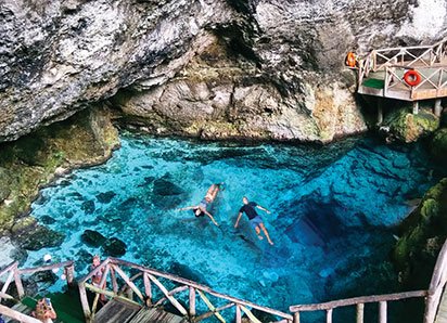 • HOYO AZUL. Descubre este impresionante cenote natural, ícono en el Caribe, y disfruta de sus refrescantes aguas turquesas, saltando en ellas o nadando en la profundidad; para llegar a Hoyo Azul, cruzarás por el divertido puente colgante y recorrerás un exuberante sendero ecológico, convirtiendo el camino en parte de la experiencia. ¡Algo único!